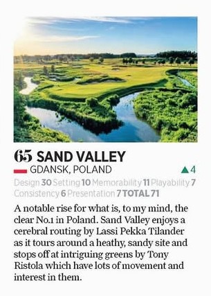 Z dumą informujemy, że ośrodek Sand Valley Golf Resort zajął 65. miejsce w najnowszym rankingu Golf World Top 100 – Continental Europe’s Best Courses 2025.